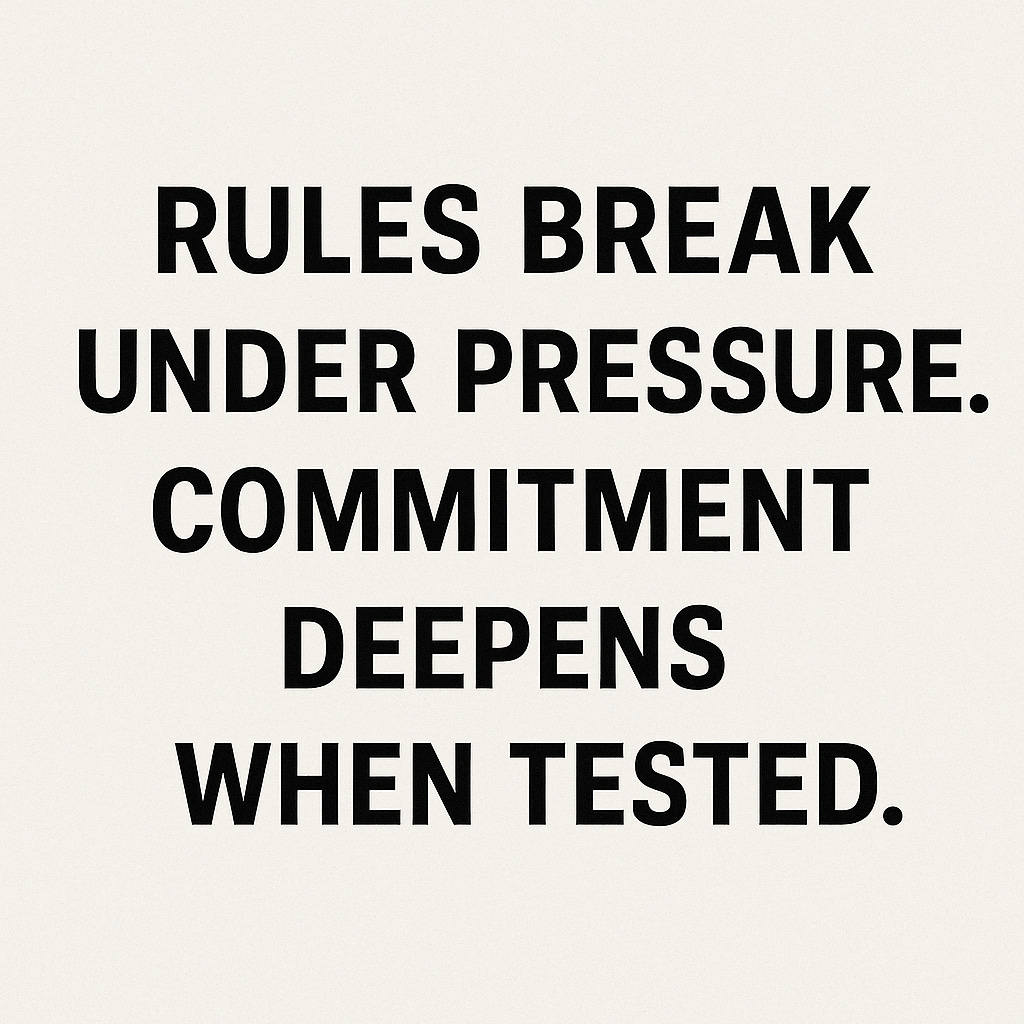 Compliance produces short term obedience at best. Commitment sustains you when nobody is watching. And commitment does not grow out of a binder full of rules. Commitment is born in relationships, trust, and shared purpose.